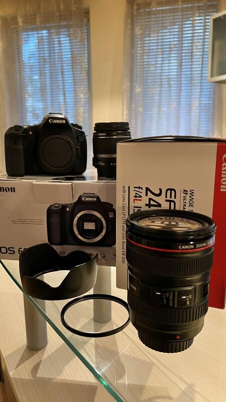 Продавам фотоапарат Canon EOS 60D + обектив Canon RF 24-105mm f/4L IS USM. Работят безупречно, в перкетно външно състояние с много леки следи от употреба. Използвани са с любителска цел и са изключително пазени.