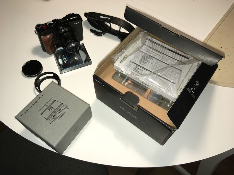 Отличен х-е4 в гаранция с ръчно изработен дървен грип, м42 преходник, карта памет, обектив ttartisan 35mm f/1.4 със степ ъп ринг и ретро сенник, както и висок клас nd 500 филтър hoya