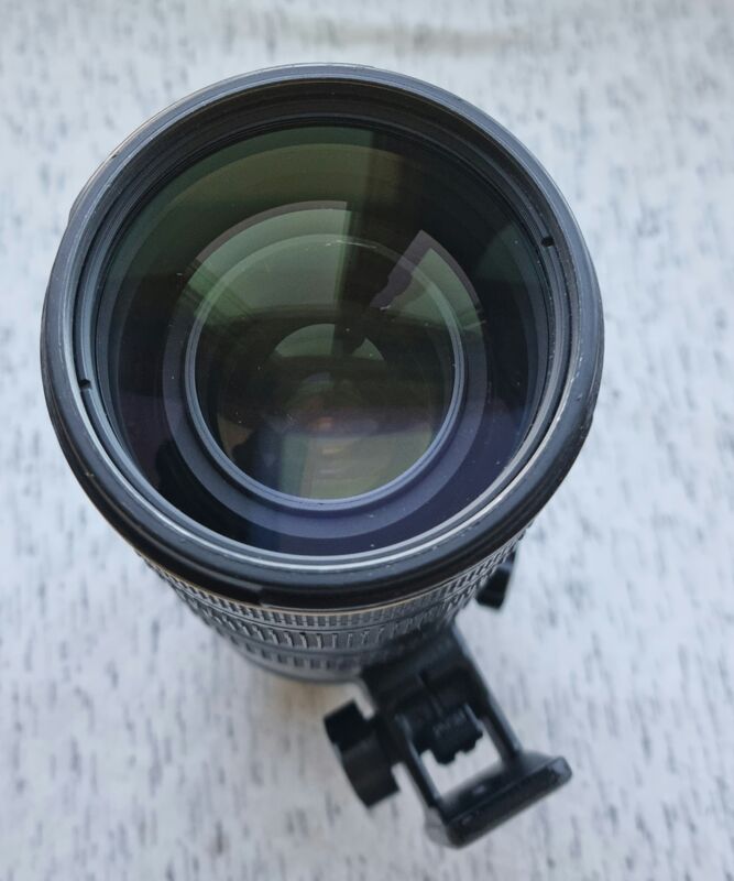 Продава се този доказано добър зуум обектив в общо много добро функционално и добро визуално състояние. По челна леща има една по-дълга, но изцяло повърхностна драскиотина и още 1-2 по мънички - никакво влияние и на много затворени бленди. Някои прашинки под челна и задна леща. Някои по-изявни следи от ползване по зони от корпуса и "петата" за статив - отново без влияние. Сенникъ т е спукан в долната част и поставен наобратно заключва слабо, но при тандартното слагане напред си стои добре. Обективът си функционира и фокусира много добре. Заедно с 2 капачки и сенник.