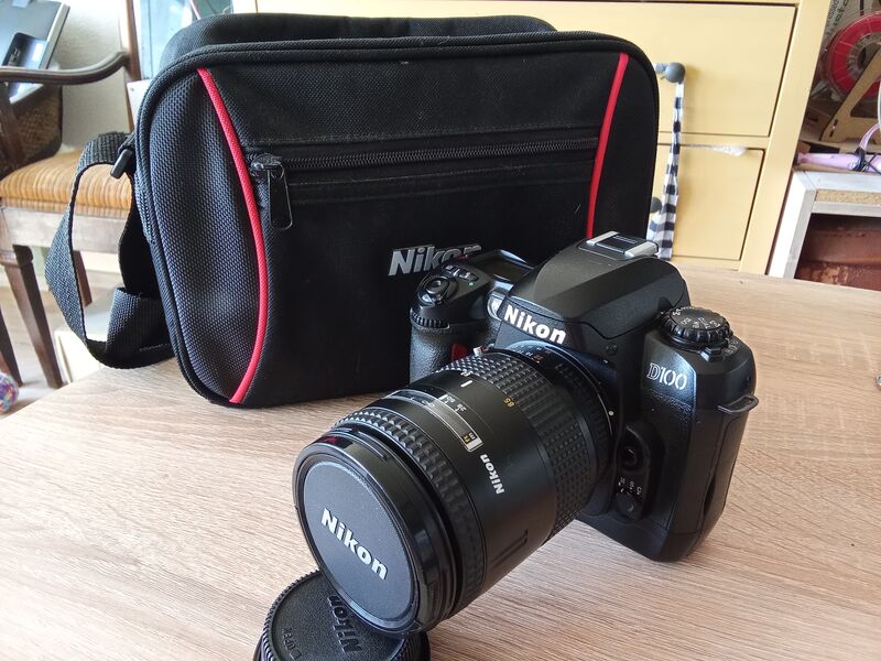 Продава се този Nikon D100 в добро функционално и визуално състояние (с изключение на дефект по дисплея - дисплеят работи, но има визуална забележка) заедно с автофокусен обектив Nikkor 28-85mm/3.5-4.5, също в добро състояние. Обективът е БЕЗ фокусен мотор. Заедно с този комплект идват и: