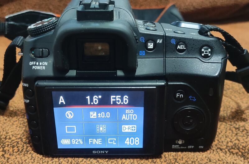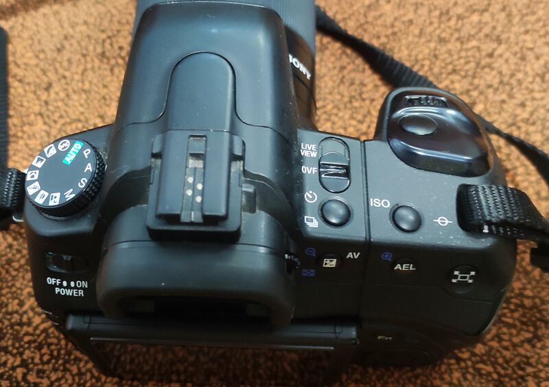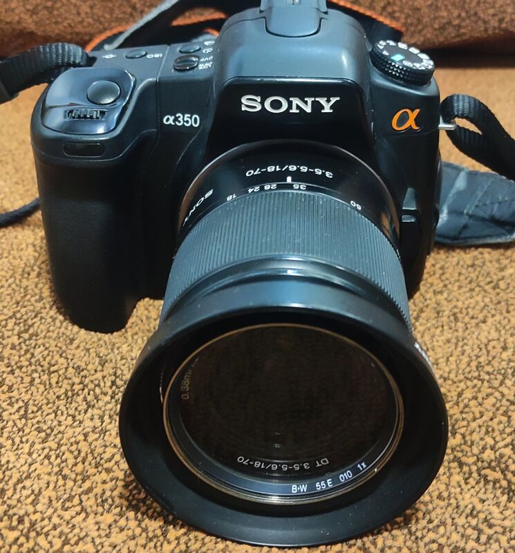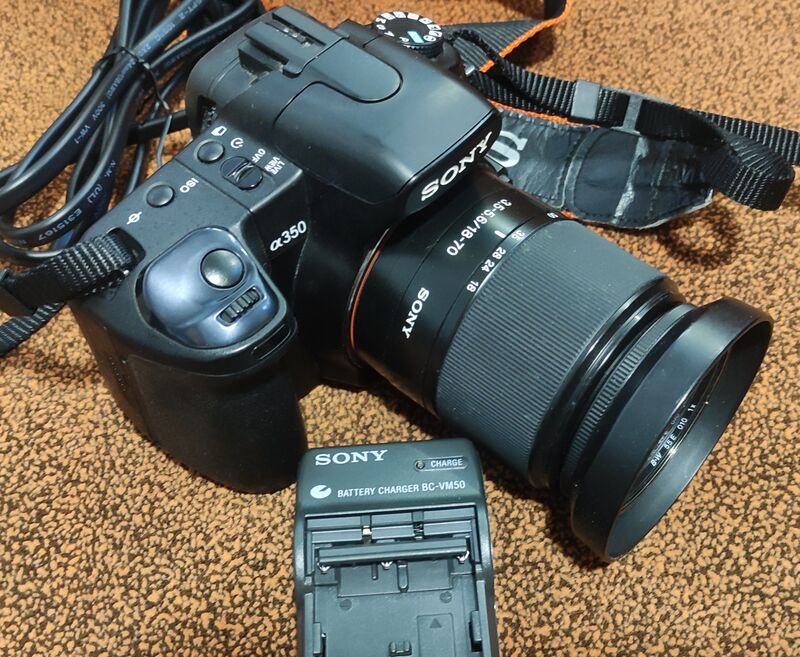 Продавам много запазено тяло Sony A350 с китов обектив Sony SAL DT 18-70/3,5-5,6 .Комплекта включва тяло ,обектив ,капачки за обектива ,филтър B+W 55мм,оригинална батерия ,оригинално зарядно ,ремък за врат и CF 2GB карта памет.Работи супер и има много приятна 14мегапикселова CCD матрица със стабилизация ,подвижен 2,7'' дисплей ,Liveview и много други.Батерията държи доста.Нормални следи от ползване предимно по дисплея и дъното на камерата заради ползването на статив ,здрави гуми . Брой кадри неясни защото за този модел няма как да се проверят.Много добра алтернатива за начинаещ любител или фен на марката.