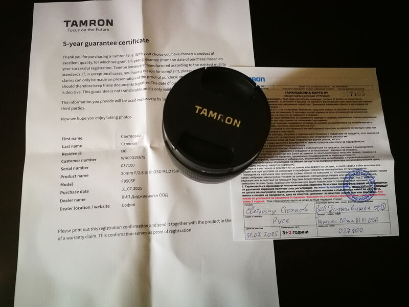Обектив Tamron 20mm f/2.8 Di III OSD M 1:2 for Sony E