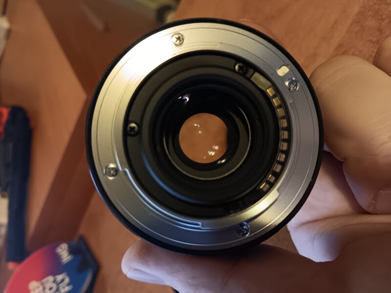 Продавам обектива в пълен комплект с предна и задна капачка, кутия и сенник който допълнително съм купувал.