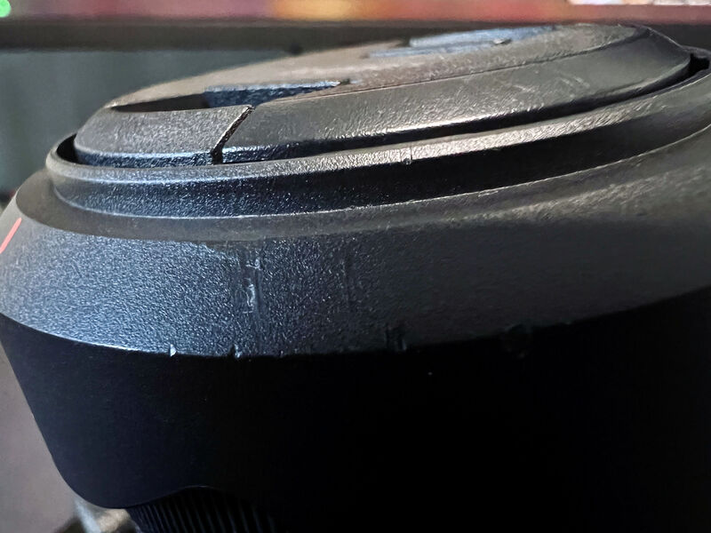 Единствената забележка е на сенника на обектива - има няколко драскотини. Добавил съм снимка, за да се види че не са дълбоки и не са от удар от изпускане. Случиха се когато поставях апарата върху камък за снимка с таймер.
