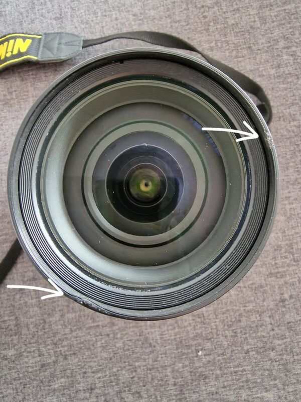 Апарата е без никакви проблеми, с две оригинални батерии, зарядно и филтър HOYA PRO ND 200. Обектива има ударено на 2 места, вижда се на прикачените снимки, това по никакъв начин не пречи на качеството на снимките, които ще направите.