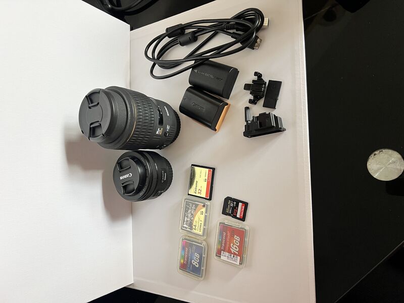 Апарата е в много добро състояние, със сменен механичен затвор преди 12 500 кадъра. В комплект с карти памет, резервна батерия и обектив Canon 50mm 1:1.8