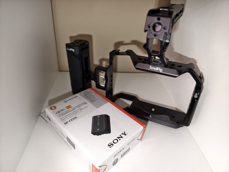 6975 кадъра, протектор на дисплея, smallrig cage, допълнителна нова оригинална неотваряна батерия -