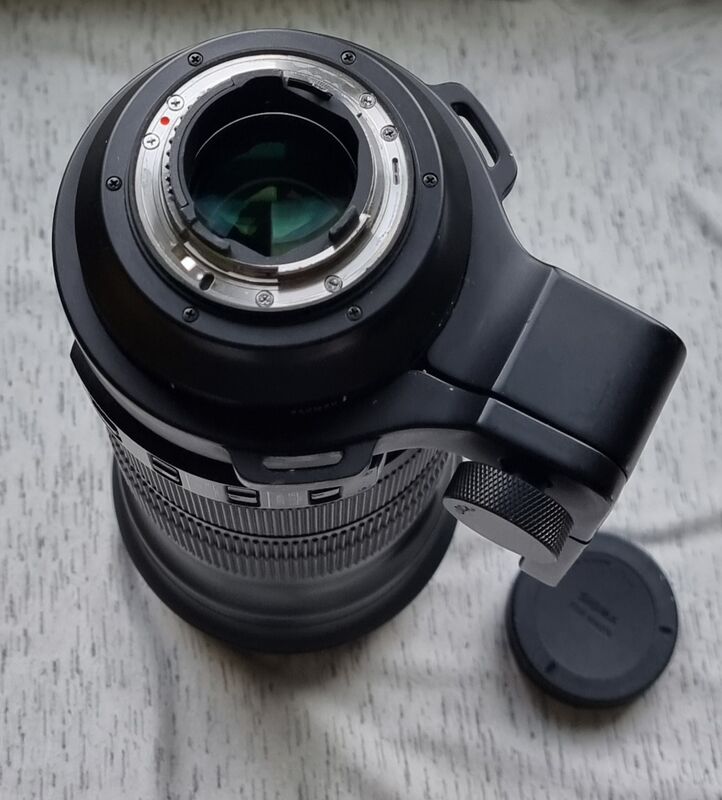 Продава се този страхотен и светлосилен дългофокусен обектив в общо много добро визуално и отлично функционално състояние. Впечатляваща оптика и параметри. По челна леща при взиране забелязвам една супер мъничка точица и някоя друга мъничка прашинка под нея - никакво влияние. Отлично поведение на рингове, фокус и стабилизация. Някои леки до нормални козметични следи от ползване по корпуса и петата за статив, единствено по-видими такива по сенника. Този обектив е съвместим и с телеконвертори на Sigmа TC-1401 и TC-2001.Заедно с 2 капачки, сенник и кейс.