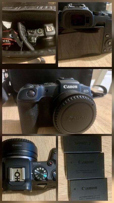 Продава се камера EOS RP комплект с чанта и 3 батерии, оригинални, зарядно 450 евро