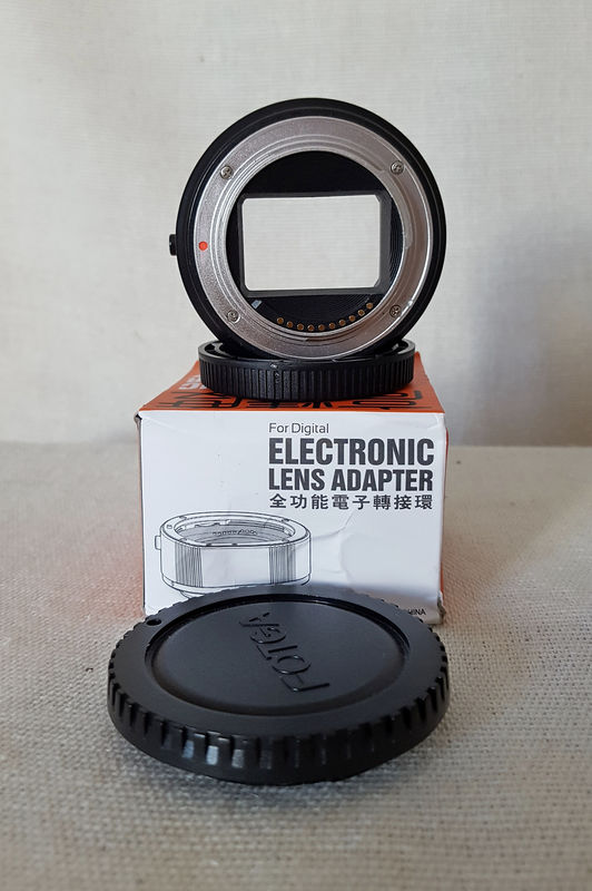Продавам практически нов Fotga AF Canon EF - Sony E Nex adapter . Използван е не повече от 10-на пъти. Без следи от употреба. Има стандартна резба за поставяне на статив. Оригиналната окомплектовка с кутийка и две капачки! Работи и с някои по-стари Канонски филмови обективи, които не се сработват с по новите и ултраскъпи Метабонес и Сигма АФ адаптери. Причина за продажбата е ,че не го ползвам.