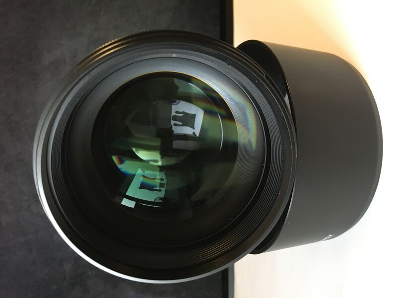 Обектива е без забележки - предна, задна капачка, сенник, меко калъфче за обектива, кутия.