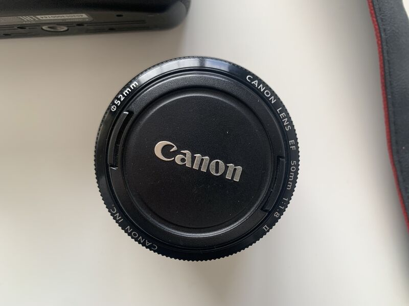 Към него продавам и обектив Canon EF 50mm f/1.8 ii. Обективът е на повече от 5 години. Използван е, но си работи отлично.