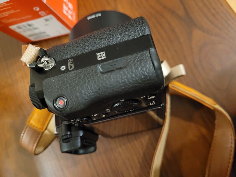 Sony a7 на 26,676 кадъра - Идва със кожен страп, капачка за тялото батерия, 16GB карта памет, зарядно и протектор на дисплея. Единствената забележка е леко износена гумичка, отстрани на грип-а. -