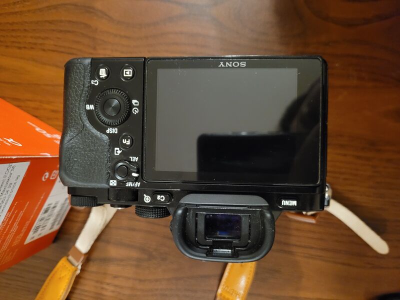 - Sony a7 на 26,676 кадъра - Идва със кожен страп, капачка за тялото батерия, 16GB карта памет, зарядно и протектор на дисплея. Единствената забележка е леко износена гумичка, отстрани на грип-а.