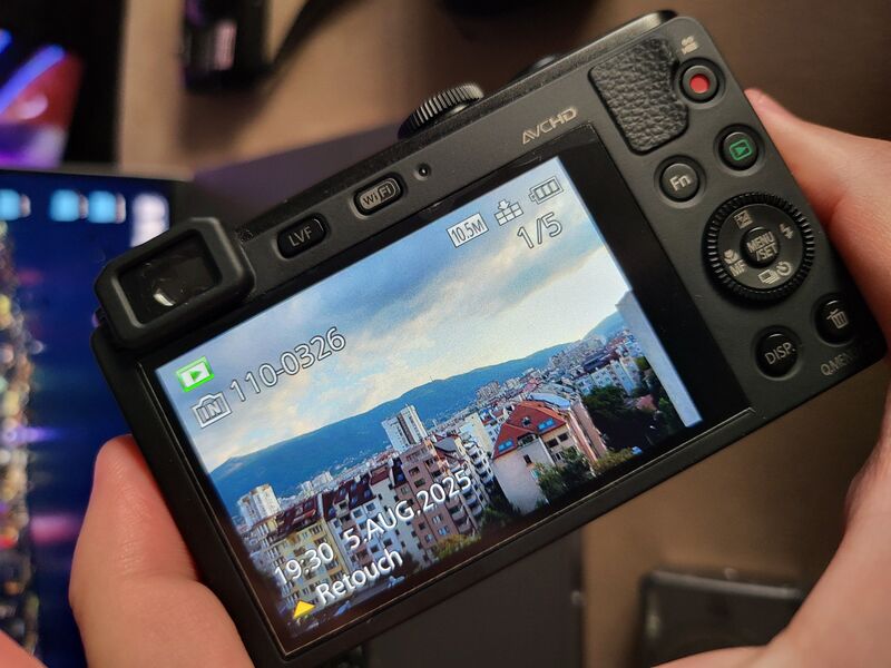 12 мегапиксела с 7.5 оптичен зуум, изключително бърз автофокус, WiFi, пълни ръчни настройки, много режими на снимане и възможност за снимане в RAW, както и електронен визьор.