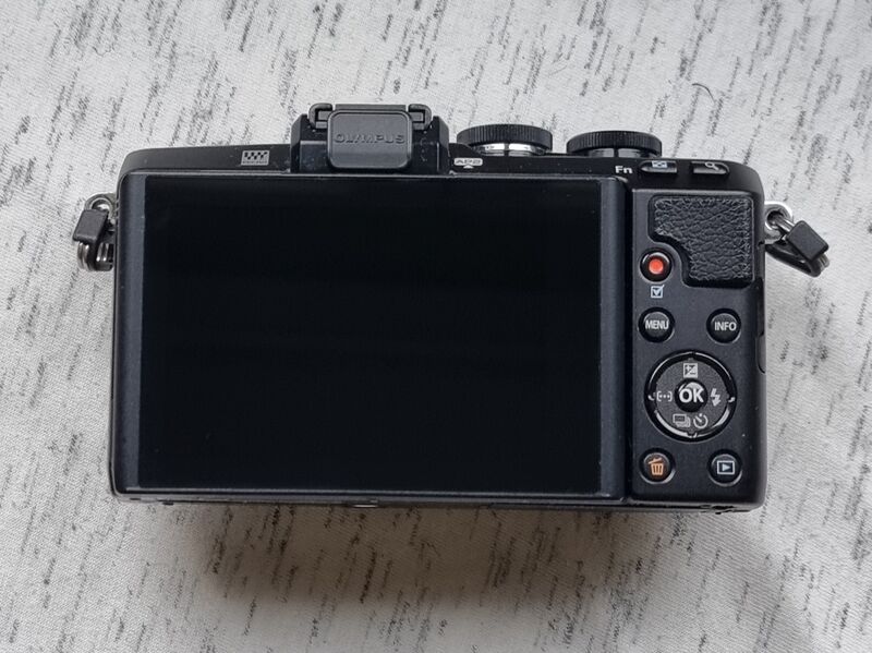 Продава се тази доста приятна и красива безогледална камерка на Olympus в много добро функционално и визуално състояние с някои леки козметични следи от ползване по корпуса. Единствената по-осезаема, но слабо влияеща забележка е, че едната странична корпусна "пантичка" до капачето за батерията е нарушена, но самата вратичка отново се затваря добре и самата батерия също стои стабилно. Броячът отчита малко над 3 хил. кадъра. Заедно с оригинални батерия, зярядно и ремък.