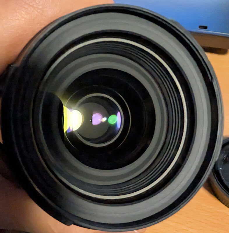 Не се различава от нов, снимката е от Интернет. Пълен комплект: обектив, капачки, сенник, кутия, книжки разни. Без гаранция.