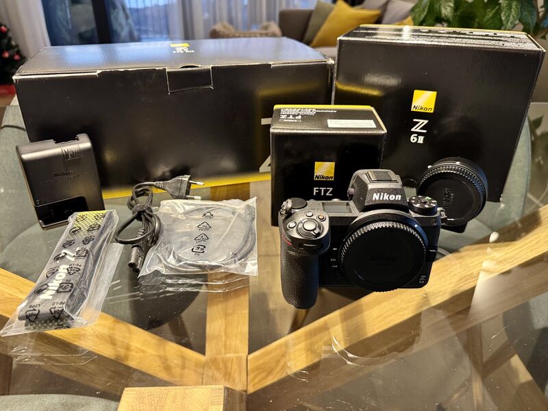 Продавам фотоапарат Nikon Z6 II в комплект с FTZ адаптер в отлично фукнционално и визуално състояние - 10/10. Кадрите към момента са 29363. Батерията е здрава, без деградация. Камерата не е мокрена, изпускана, отваряня, ремонтирана или подобни. Използвана е предимно като второ тяло. Първи собственик.