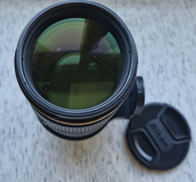 Продава се този популярен зуум обектив с хубав рисунък и боке, но за жалост с неработещ автофокусен мотор - чест синдром във времето с тази версия. Повече козметични следи от ползване по корпуса и сенника. По челна леща се забелязвам една по-видима зоничка с протриване/драскотини и 2-3 много по-малки. Плюс прашинки и 2-3 боклучета под челна леща - в конкретния случай никакво влияние и на много затворени бленди. Заедно с 2 капачки, неоригинални "яка" за статив и сенник.