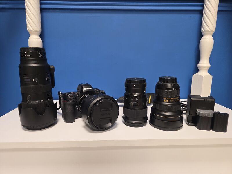 Nikon Z8 (NikkorZ 24-70mm f 2.8, NikkorZ 70-200mm f2.8, Nikkor 14-24mm f 2.8, Sigma 50mm f1.4 Art+ Nikon FTZ II adapter)