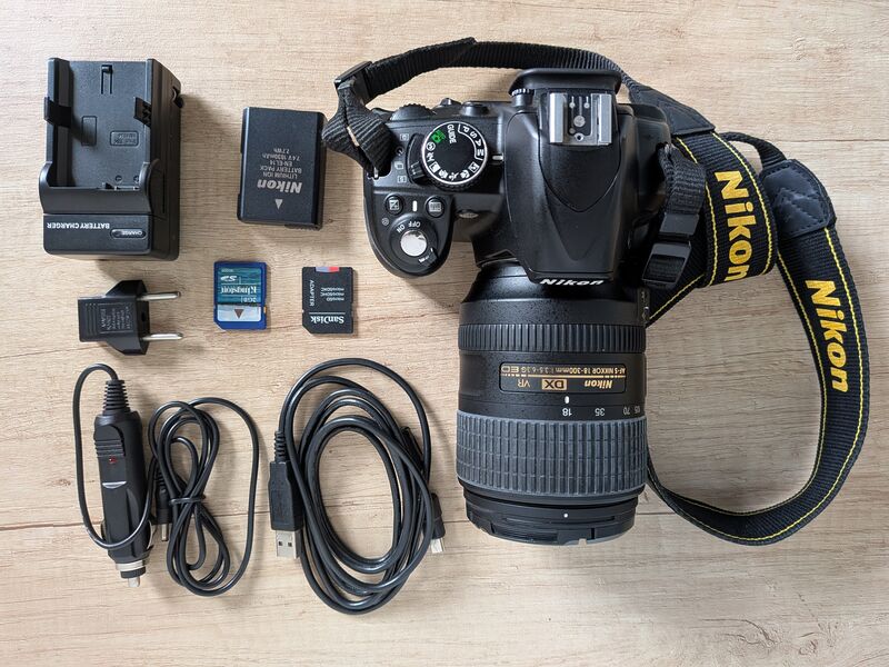 Продава се фотоапарат Никон D3100 заедно с обектив AF-S DX Nikkor 18-300 f/3.5-6.3G ED VR.