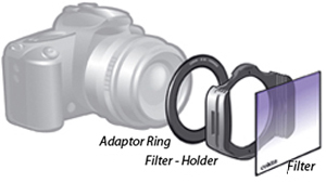 Купуват се отделно и държача и преходния пръстен - първия в зависимост от зрителният ъгъл на обектива, а втория - в зависимост от диаметъра му.