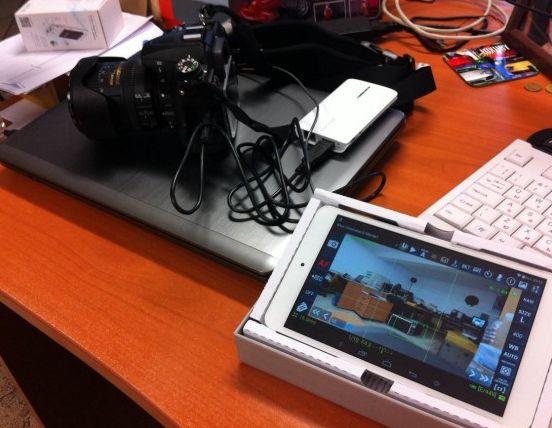 Лаптопа с един дълъг ЮСБ кабел. На лаитрума включваш тедъркапчър. Tethered Capture