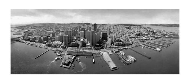 Това предното е прочута снимка. Преди десетина години един пич направи реплика на камерата на Лоурънс и я даде на правнука му за да заснеме Сан Франциско от същия ъгъл (само че от хеликоптер).