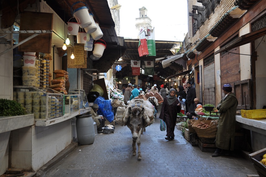 Най-удобният начин за доставка на стоки в магазинчетата в старата част на Фез е с магарета.