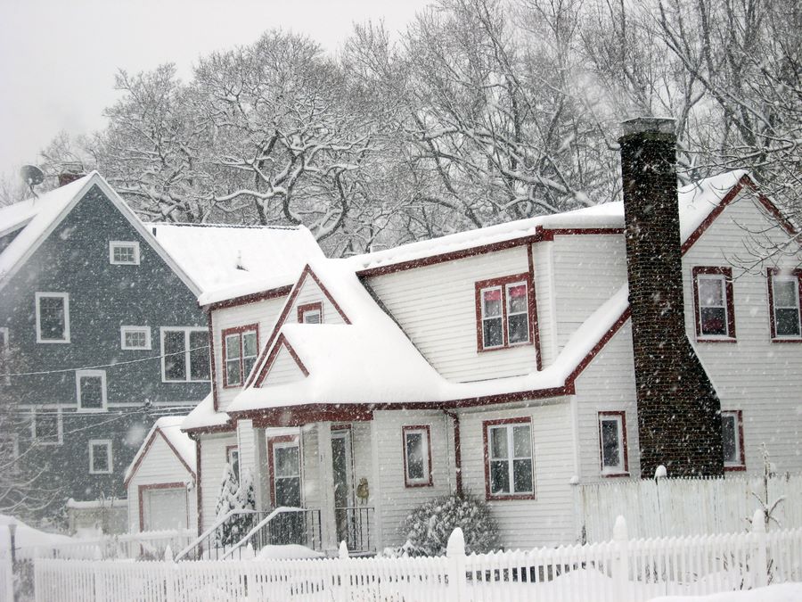 Къщички в снега се гушат и коминчетата пушат.