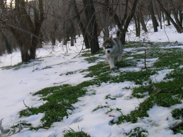 Макс тича и се радва на снега...