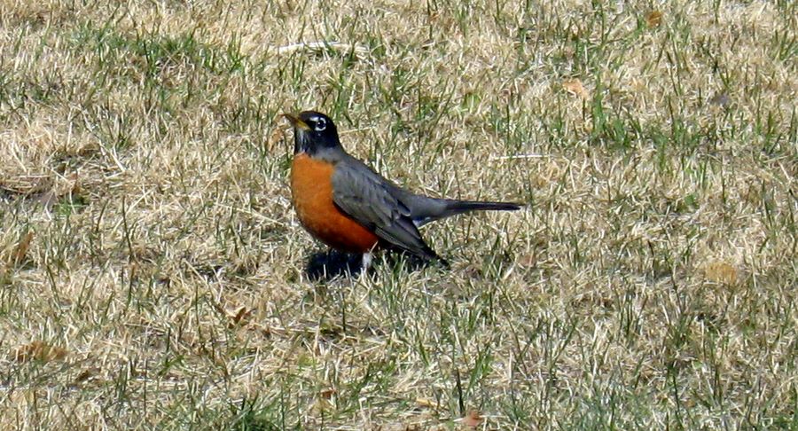 Тази година моето пролетно гостенче подрани.Пощура се по замръзналата трева с надеждата да си намери някое червейче и отлетя. Дали по-късно ще се върне?