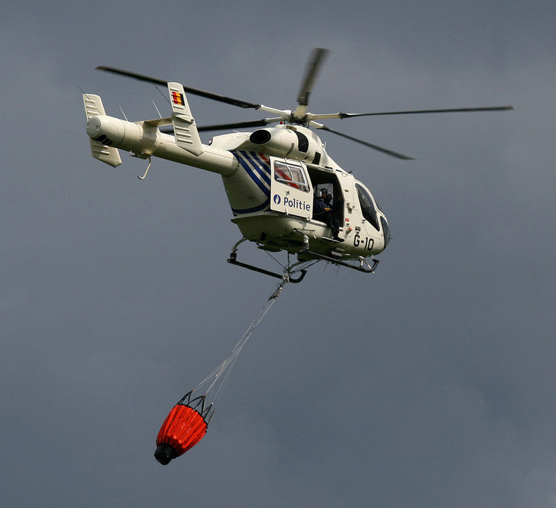 Police helicopter flying away to go pick up some more water