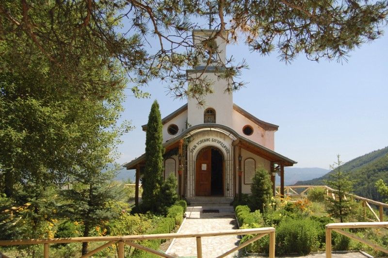 Това е новопостроеният параклис, издигнат на мястото на старата едноименна църква в близост до Костенския водопад.
