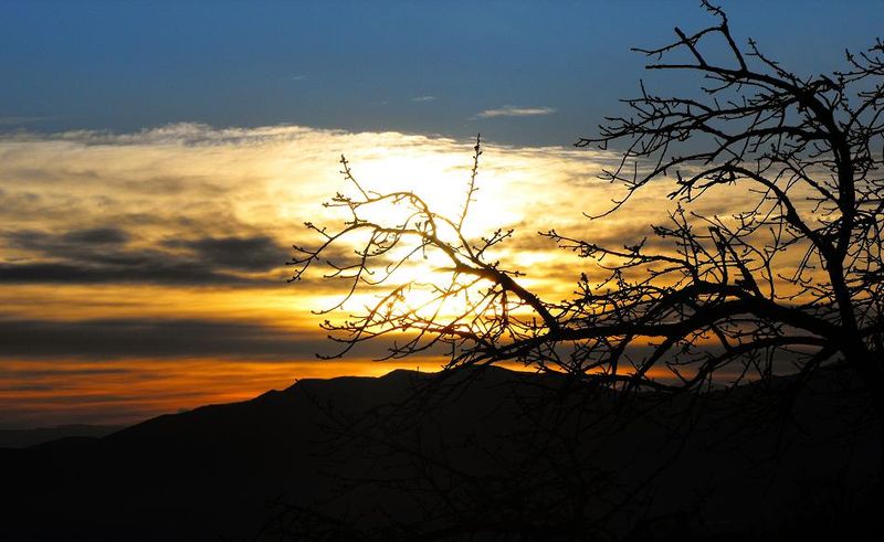 Клонките в залязващото Слънце