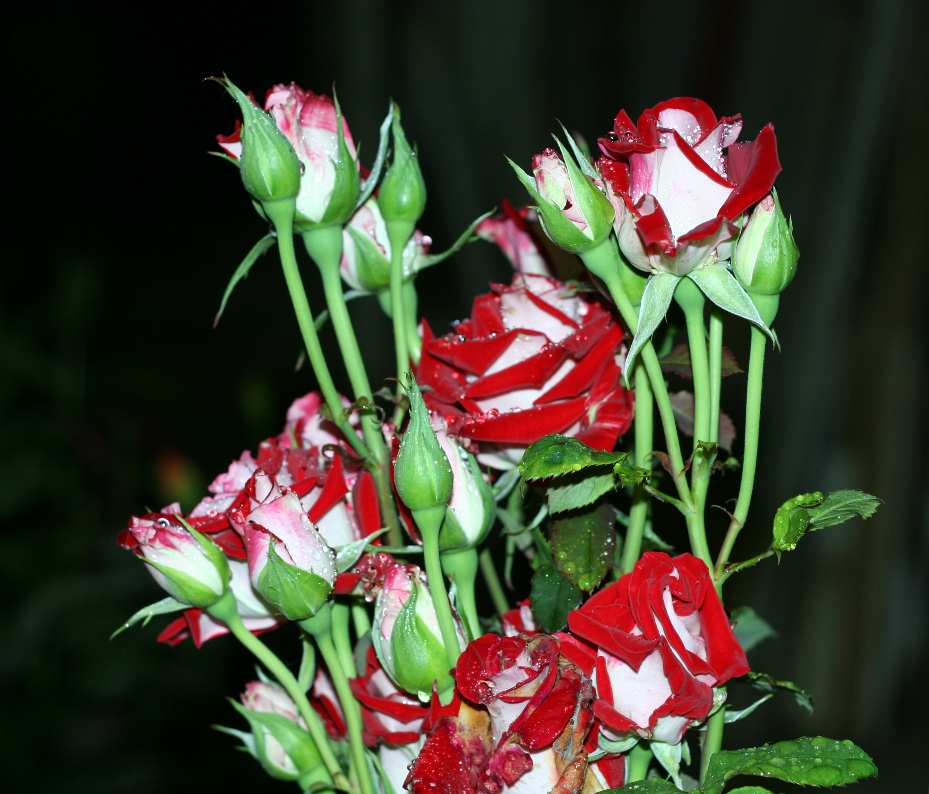 Градински рози през нощта