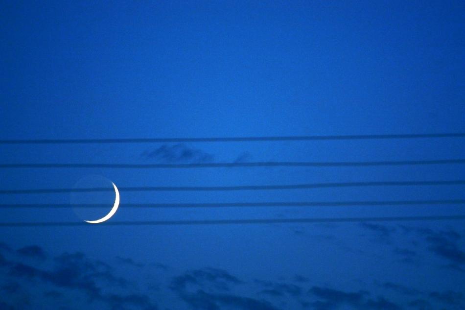 Съвсем случайно луната е кацнала върху петолиние от жици.
