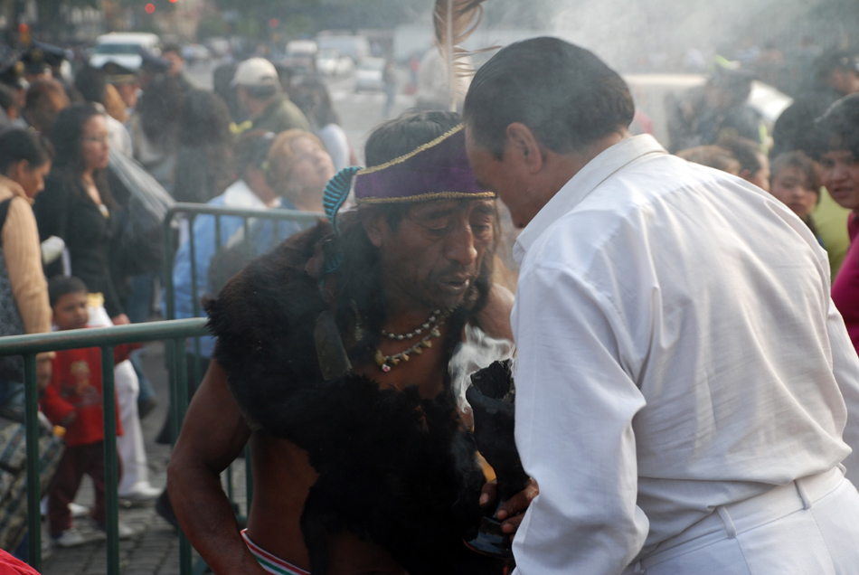 Ritual for protecting from evil spirit. This is conducted 10m from the oldest catholic church in Mexico built on the top of Aztec temple.
