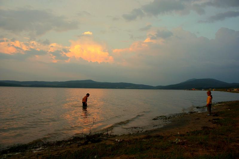 Къпане птеди залез.