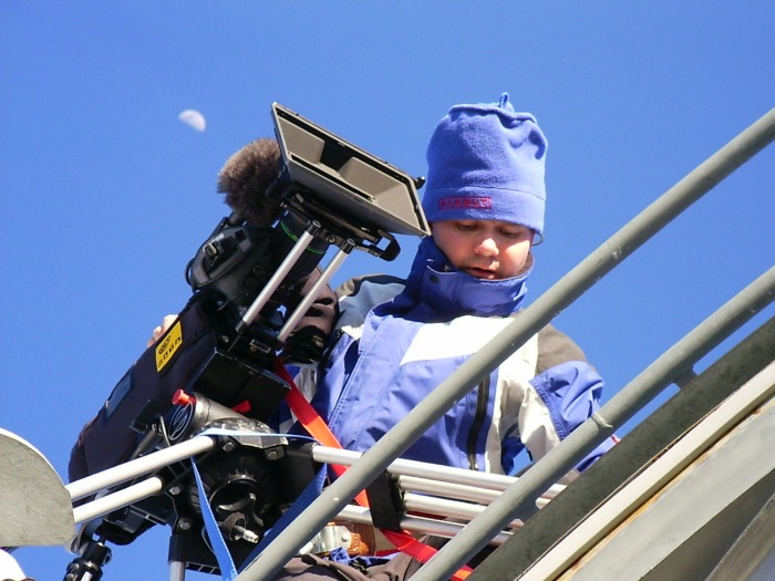Тази снимка е направена на височина 3585 м на връх Jungfrayjoch в Алпите. Това е най-високата точка в Европа достъпна със зъбчата железница, минаваща през тунел! На върха беше дошъл екип да снима шоу филм за парка на Деникен в Interlaken. Екипът качи камерата на купола на телескопа при вятър 60-70км/час. Камерата е Sony с обектив Canon и струва около 140 000 USD. С първите 9 камери от този модел са снимани последните серии на Междузвездни войни, а тази камера носи сериен номер 10! Естествено има 3 CCD с по около 6 Mpix и може да записва 50f/s при прогресивна развивка. Камерата дава качество, еквивалентно на 35мм кинофилм.