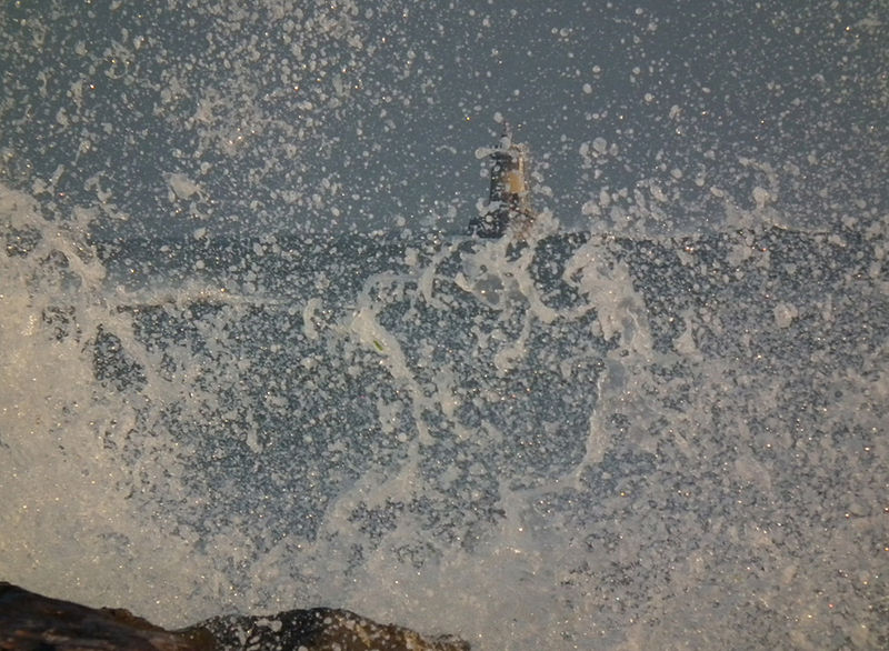 Фарът на Поморие зад водна завеса