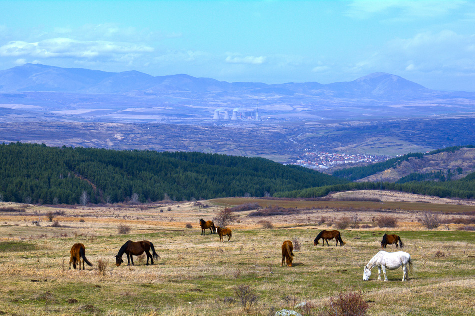 На заден план се вижда част от гр. Дупница, а още по-назад ТЕЦ Бобов Дол.