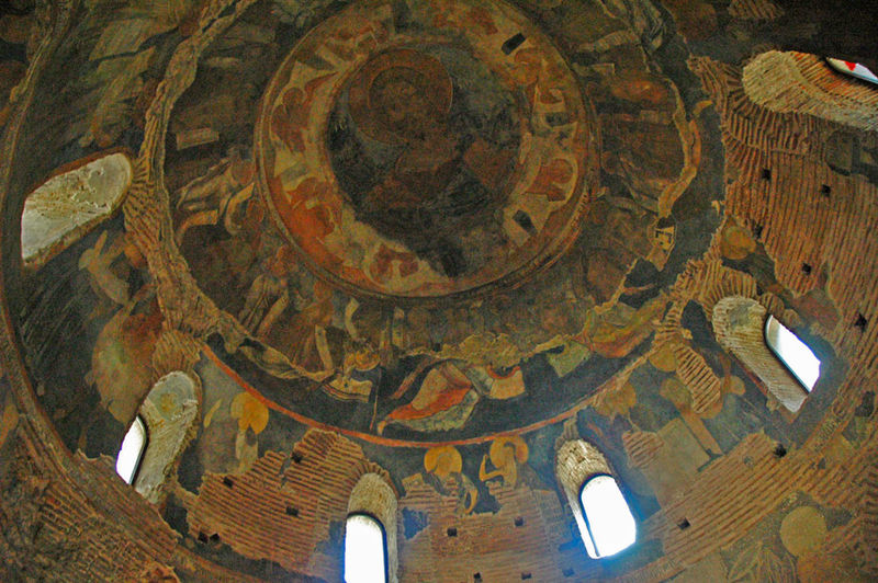 Запазени са във фрагменти 5 слоя стенописи (първият — римско-византийски с растителни мотиви от 4 век; вторият — български с ангели от 10 век; третият — от 11 век и 12 век - фриз с пророци и фрески, изобразяващи Възнесението, Успение Богородично и др.; четвъртия — от 14 век с ктиторския портрет на епископ северно от входа и пети — орнаментален от времето на джамията).