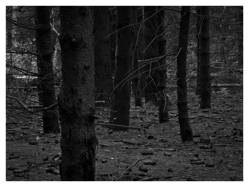 Зад второто дърво от ляво е Червената шапчица (ама не се вижда) , а малко извън кадара е и Вълчо дегъзиран като дървар ;-)