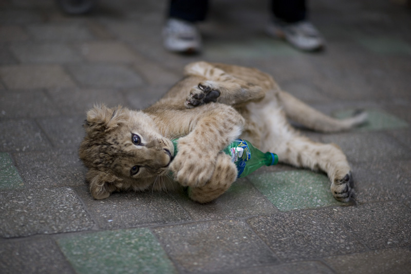 Лъвчето не е затворено в клетка и си щъка между децата :)