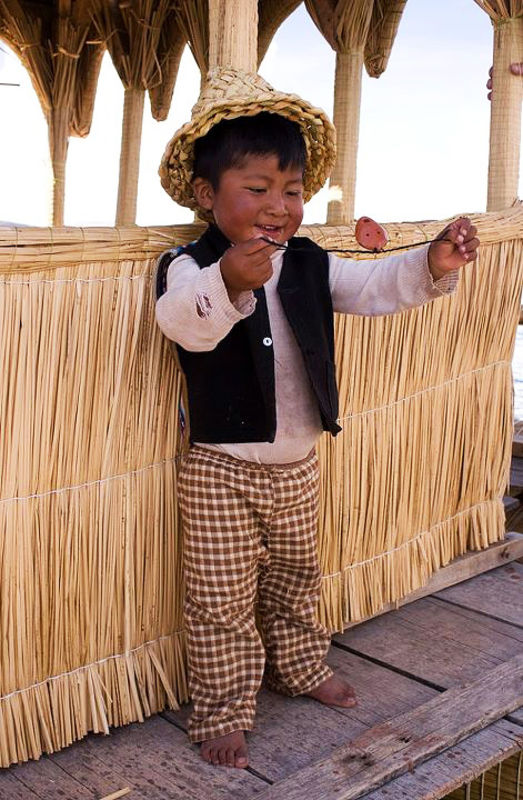 Mалко момченце от племето Урос, езерото Титикака, Перу