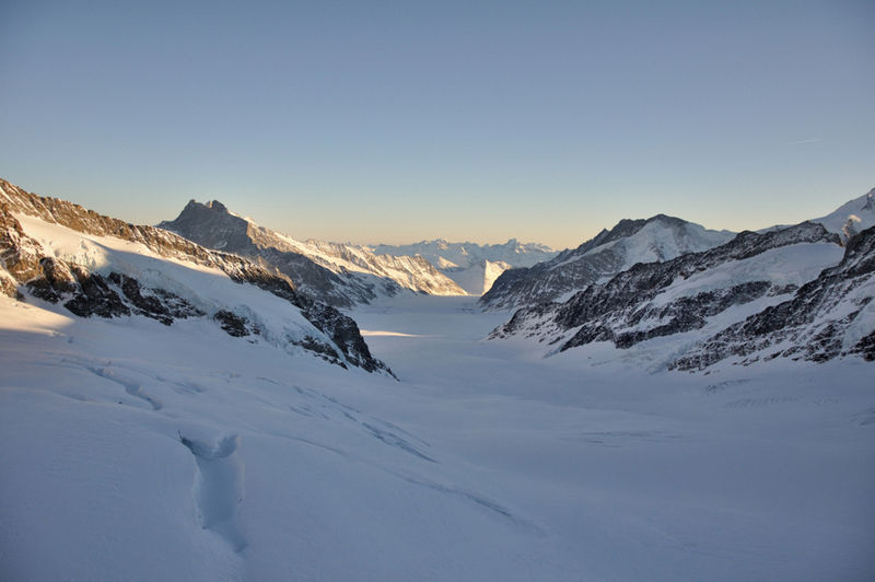 The Aletsch Glacier is the largest in Europe (23 km). This is the begging visible from Jungfraujoch at 3454 m.