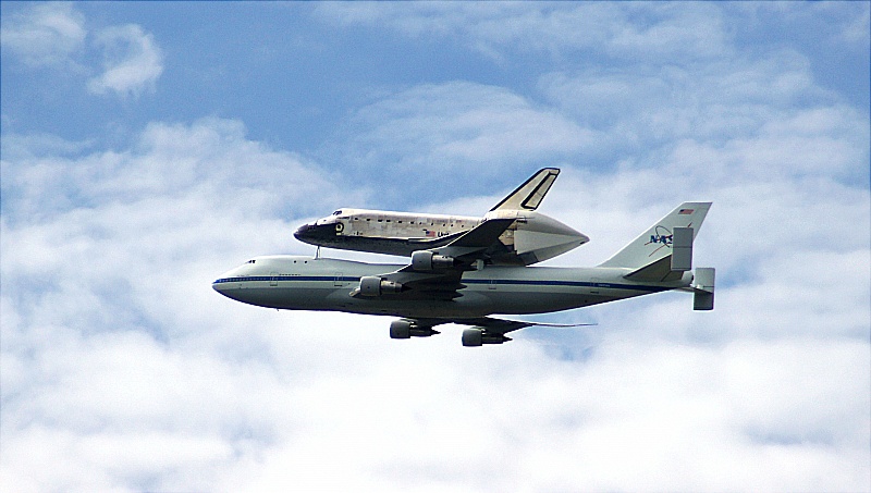 Discovery in the air for the last time: on its way to the Air and Space Museum in DC