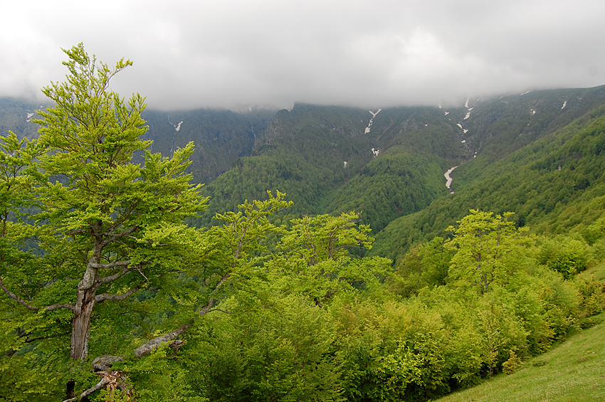 Стара планина в района на вр. Ботев на 2 юни. Върховете бяха скрити в дъждовни облаци.