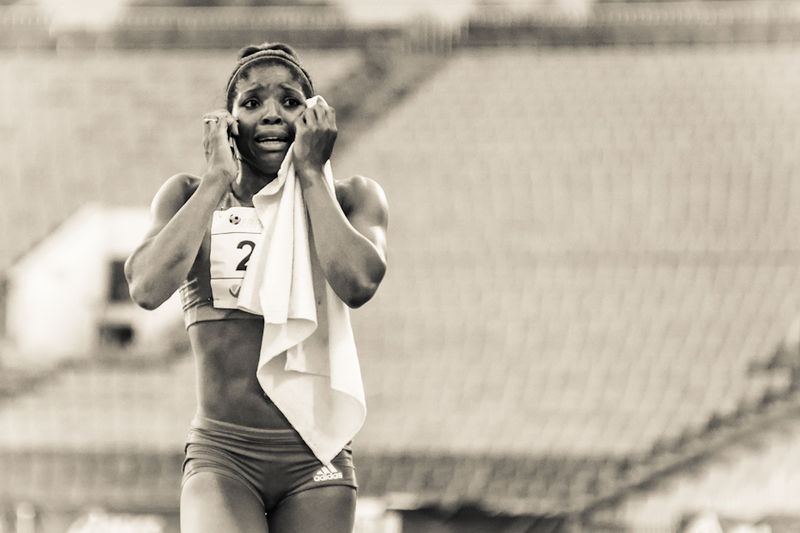 Abigail Irozuru не може да сдържи емоциите си след като в последният си опит в скока на дължина е постигнала 6.80 с което е покрила "А" норматива за Олимпиадата в Лондон.